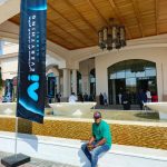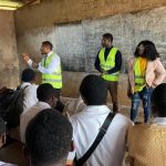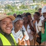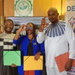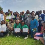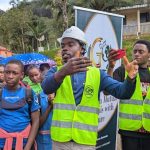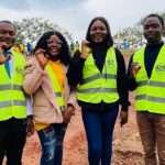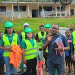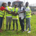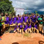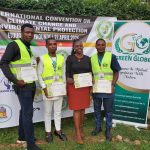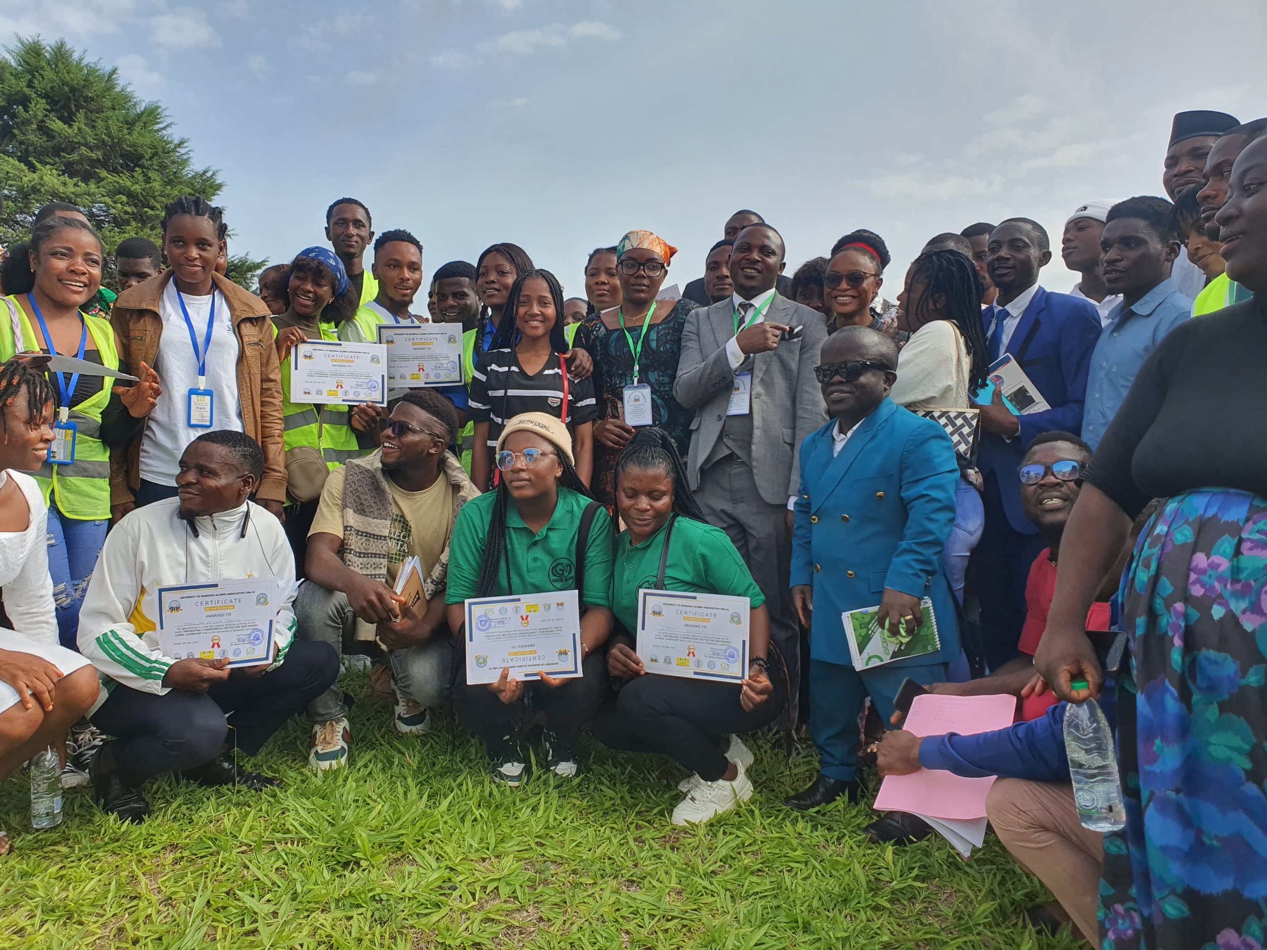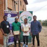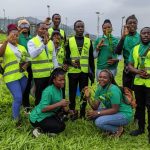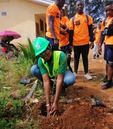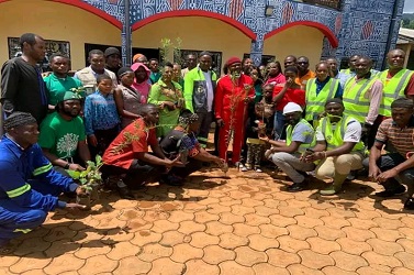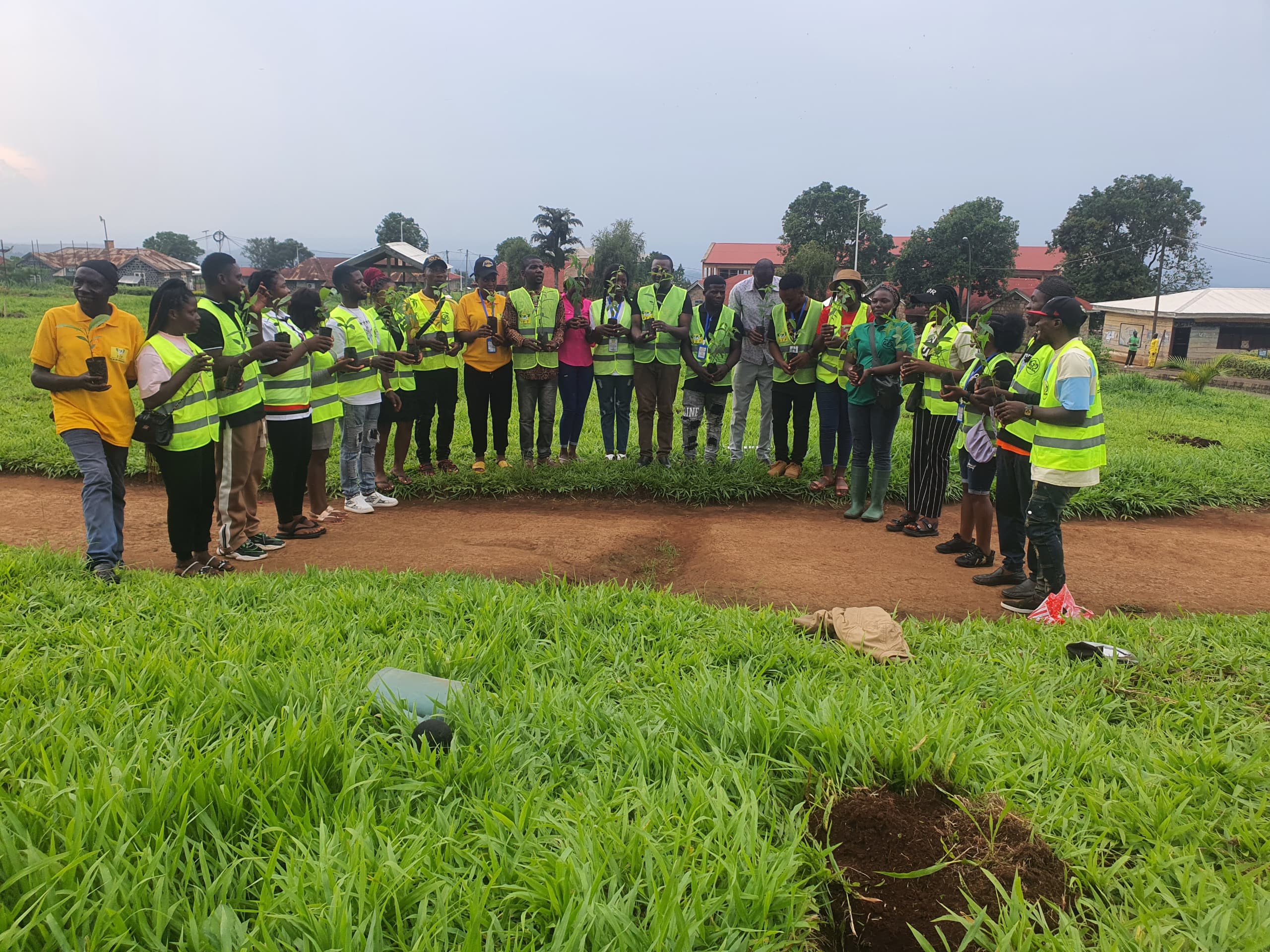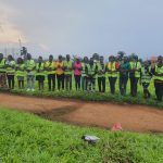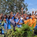 Strong Caucasian man plants a cedar tree. Dig the ground with a shovel. Planting plants. Coniferous seedlings. Ecology, nature conservation, forest restoration. Teamwork. Christmas tree.
